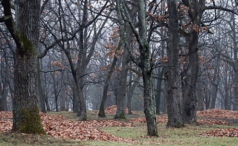 ②こんな風にあちこちに集められた柏の葉があり