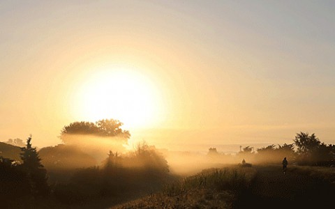 ⑥帰りに堤防遊歩道で出会ったワンちゃん