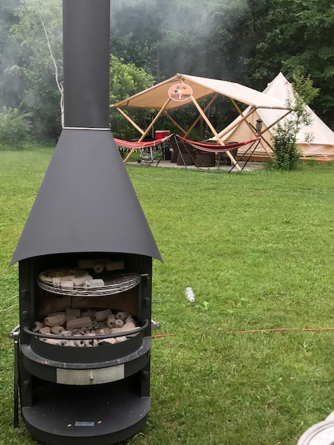 豊かな自然の中で、ストーブ・ベット・家具付のテントとBBQ。広い敷地内をレンタルバイクで散歩も出来る素敵な空間でした。