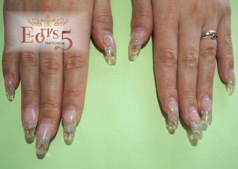 先月にそのステンドグラスジェルをされたF川様が、「綺麗に付いているのでもう1ヵ月もたせたい」という事で、お直しさせて頂きました。