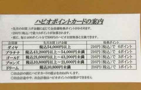 ハピオカードのポイントは前月のお買上げ金額によって当月のポイント特典が変わります!