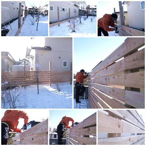 カラマツ材の木フェンスと屋根付きデッキ!