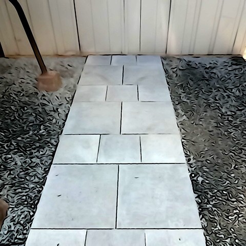防草シートを貼って化粧砕石の敷均しも完了しました。