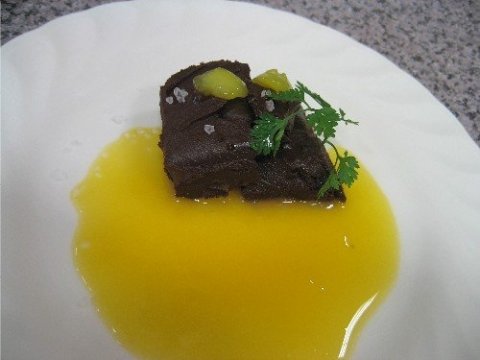 チョコレートのガナッシュオリーヴオイルとオレンジを添えて