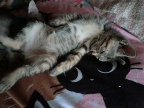 先住猫が病死家族に会話が少なくなり、ある日猫カフェwishさんへ行きロックとロックの世話をしているぽん太に出会い一目ぼれ現在我が家の家族となる。一時預かりで我が家にいた姫は女の子でお茶目で可愛かったのでそのまま我が家の家族でいましたが(4ヶ月と少々)2010.9.24亡くなりました。