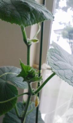 ‘きゅうり’の種十数粒鉢植えした中のひと粒が芽を出し元気に育って...