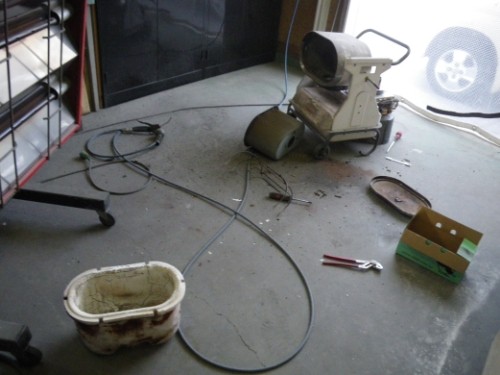 ジェットヒーターから黒煙が出て目がシパシパする状況。はい!バッチ...