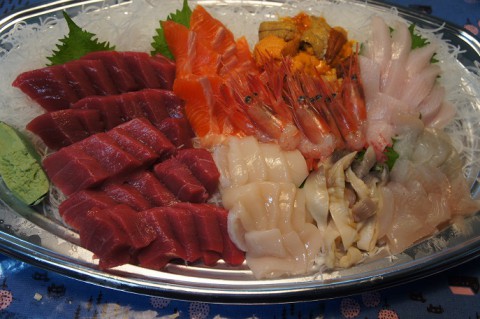 一足早いお盆の宴。 刺身の盛り合わせ4人前です。ブログなどで多...