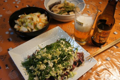 この日は、冷凍保存しておいたカツオのたたきを解凍し、ニンニク、...