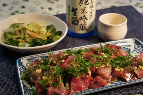 生のカツオをポン酢で~♪