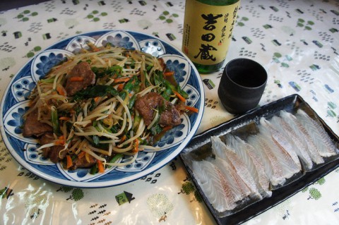 鯛の昆布〆とレバニラ炒めを手取川の吉田蔵で~♪