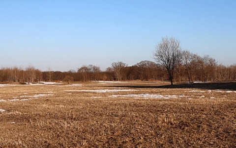雪が消えた河川敷