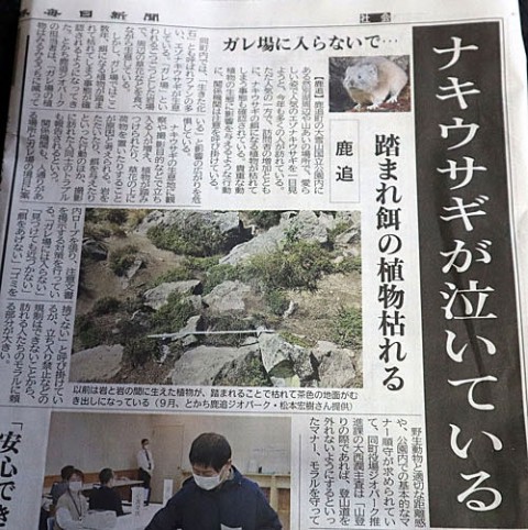 ①メイン画像 19日の十勝毎日新聞で 『ナキウサギが泣いている』...