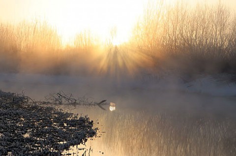 ①メイン画像 河川敷の霧氷がきれいだったので その中を歩き十勝川...