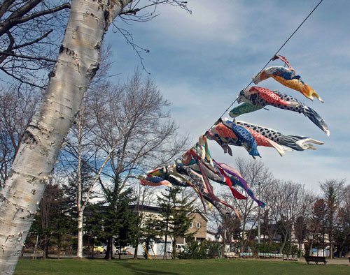 強風に泳ぐ鯉のぼり