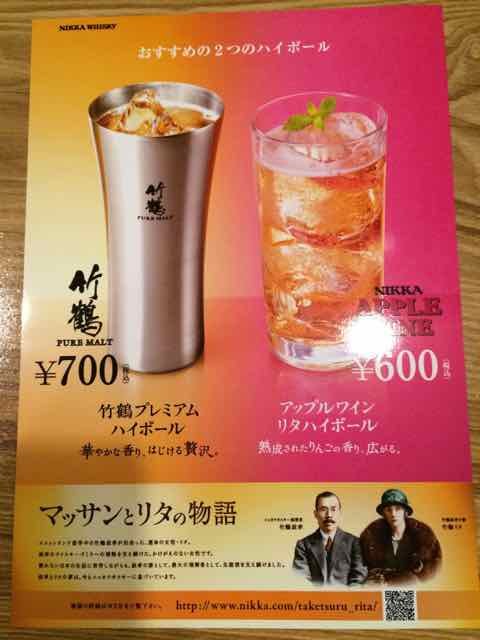 ニッカの便乗作戦に当店も便乗します。「マッサンハイボール」と「リ...