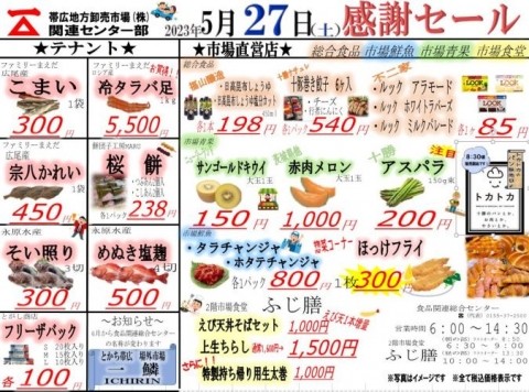こんにちは。市場食堂ふじ膳です。明日は食品関連総合センターのセー...