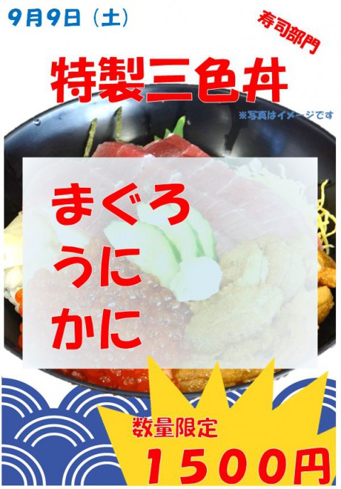 明日は土曜日!特製三食丼・うに丼・特製天丼をご提供ですっっ!!