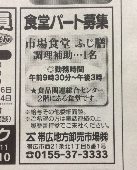 こんにちは。市場食堂ふじ膳です。今日の帯広は気温が13℃台まで下...