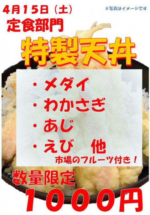 春ですっ!感謝セール!山菜天丼!特製五色丼!うに丼!まぐろ中落ち丼!