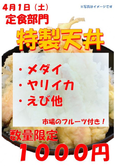 特大えび天丼の誤り。 他市場の食堂とコラボ!?