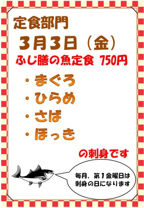 こんにちは。市場食堂ふじ膳です。3月が始まりました。昨日のブログ...