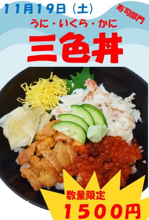 厚岸のカキ天丼! うに・いくら・かにの三色丼!