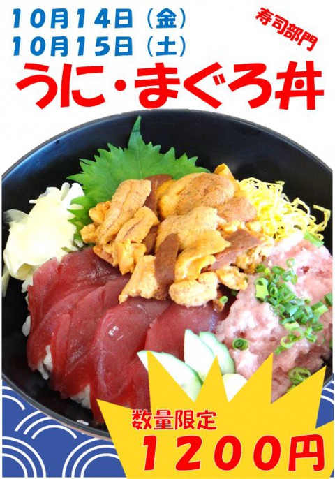 うに・まぐろ丼1200円! 新物ししゃもの特製天丼1000円!