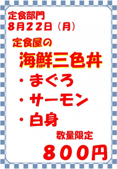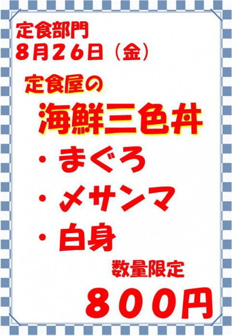 こんにちは。市場食堂ふじ膳です。今日は約3週間ぶりに寿司部門が営...