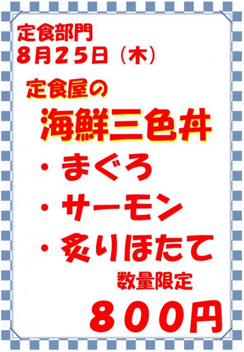 特製天丼! まぐろ丼! 海鮮三食丼! 豪華3つの丼ぶりです!