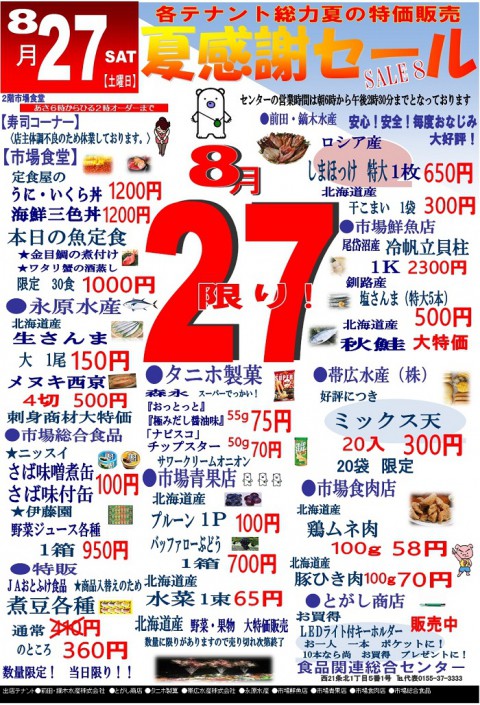こんにちは。市場食堂ふじ膳です。今日の帯広は湿度が高いですねぇ~...