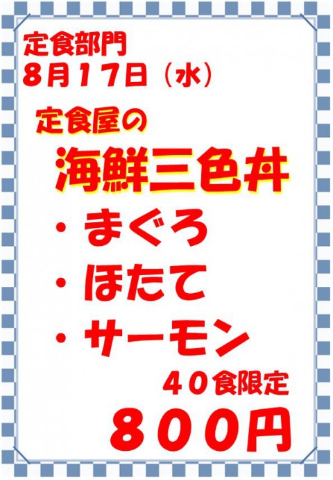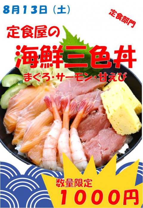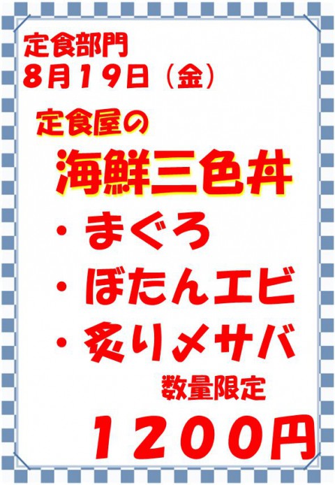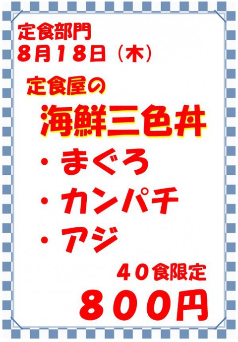 【明日も寿司部門のみお休みです】 なので、ネギトロ丼やお刺身定食。