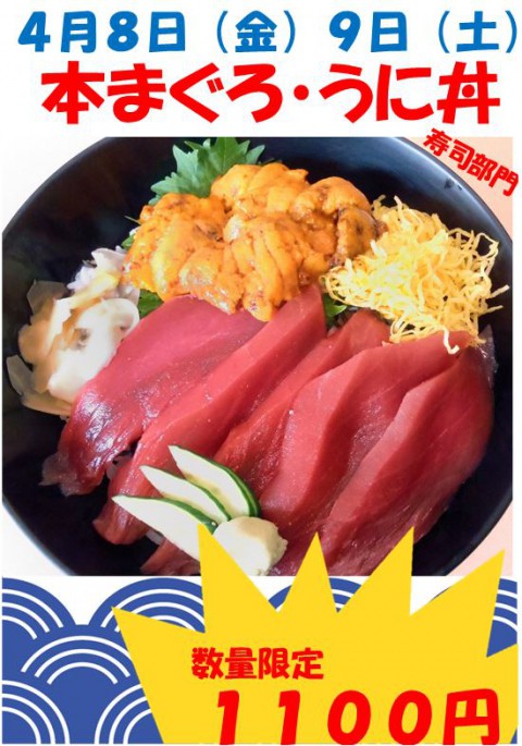 明日も「本まぐろ・うに丼1100円」です!