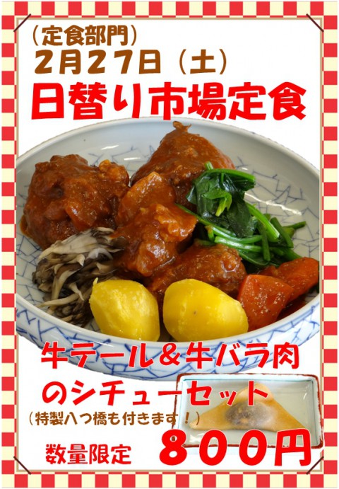 こんにちは。市場食堂ふじ膳です。明日は限定メニューが2つもありま...