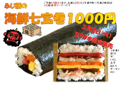 ふじ膳の恵方巻 ⇒ 【 海鮮七宝巻 】 予約受付開始!!