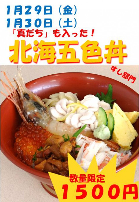 明日(1/22)・明後日(1/23) 北海三色丼 1500円!!