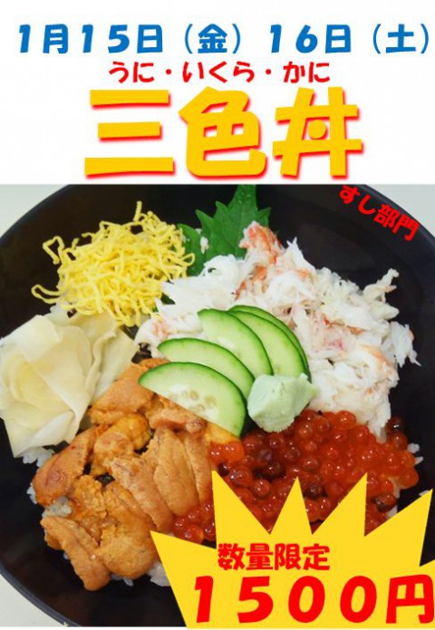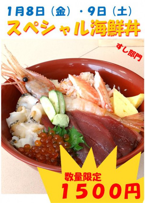 明日・明後日!スペシャル海鮮丼 1500円。