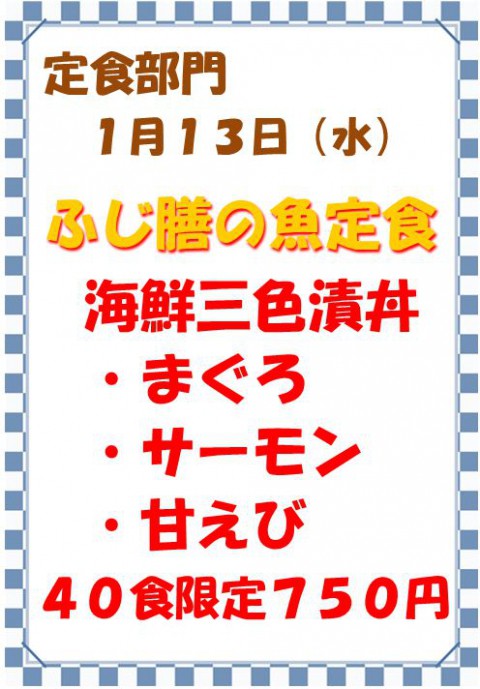 こんにちは。市場食堂ふじ膳です。お正月が終わり、生活のリズムは戻...