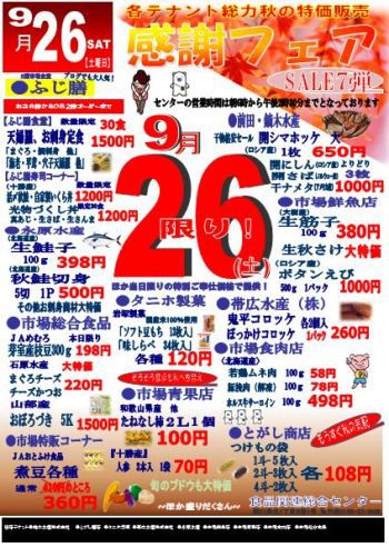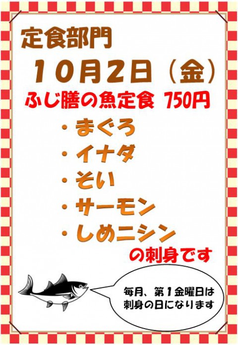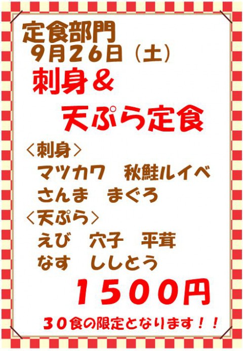 明後日(9/26)!豪華、刺身&天ぷら定食!!