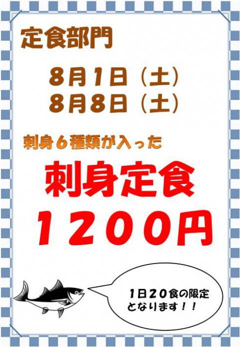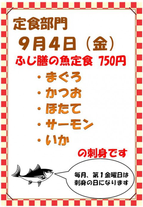 こんにちは。市場食堂ふじ膳です。早いもので、明日から9月ですね。...