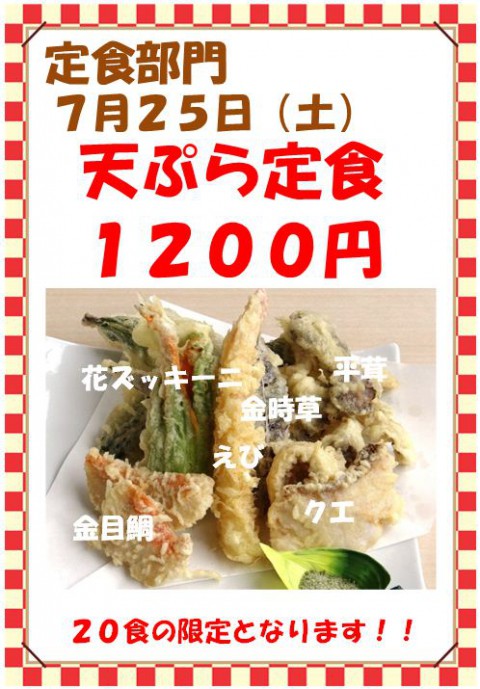 2週連続週末企画、2週目! 豪華天ぷら定食! ぜひ!!