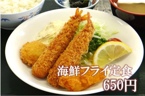 おススメ!帆立の刺身とキスフライ、煮えび ・・・ ふじ膳の魚定食