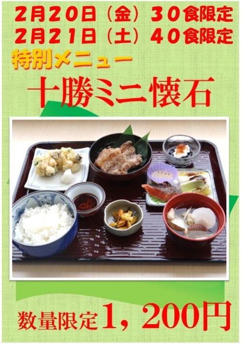 今日・明日限定 十勝ミニ懐石!! さらに・・・