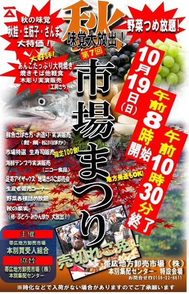 こんにちは。市場食堂ふじ膳です。明日、10月19日、帯広市場の本...