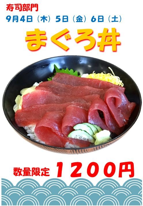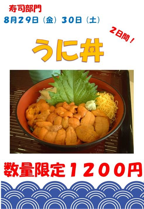 明日はウニ丼1000円、マグロ丼1200円を販売!