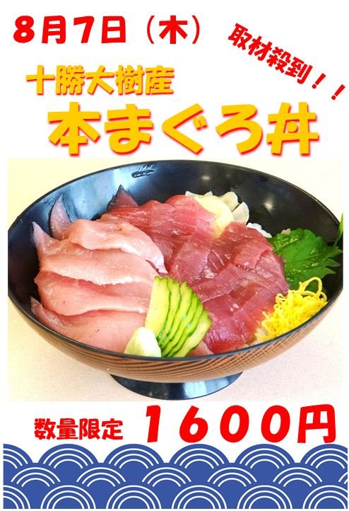 全国ネットで紹介! 明日も大樹産マグロ丼!