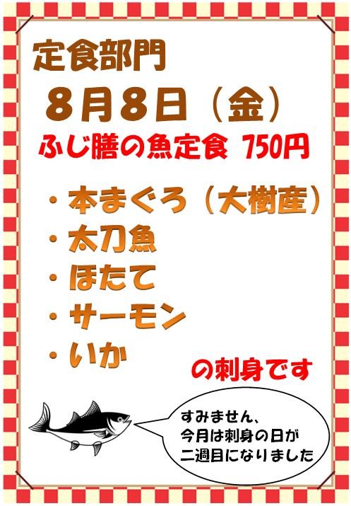 こんにちは! 市場食堂ふじ膳です!昨日話題にした大樹産のクロマグ...