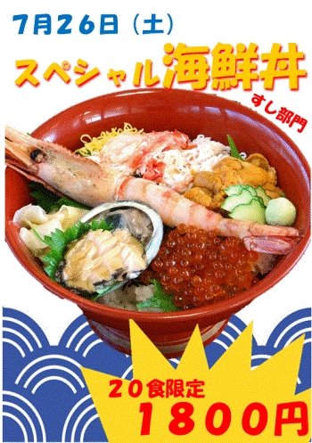 こんにちは。市場食堂ふじ膳です。今日のスペシャル海鮮丼や平目うに...