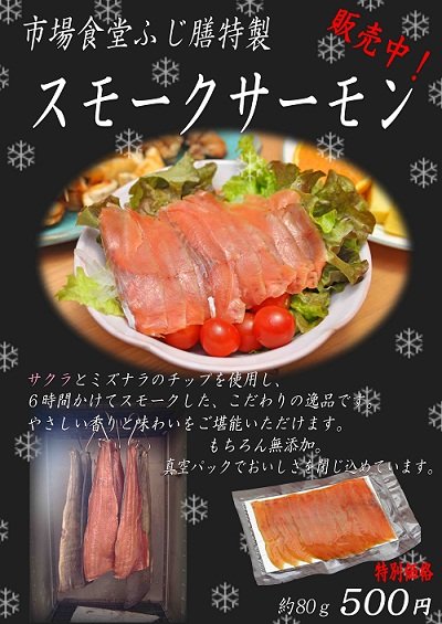 お持ち帰り用(真空)、特製スモークサーモン 500円
