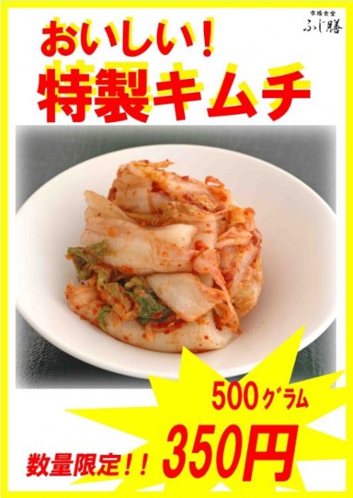 (写真は販売中の市場食堂”特製キムチ”です)こんばんわ。市場食堂...